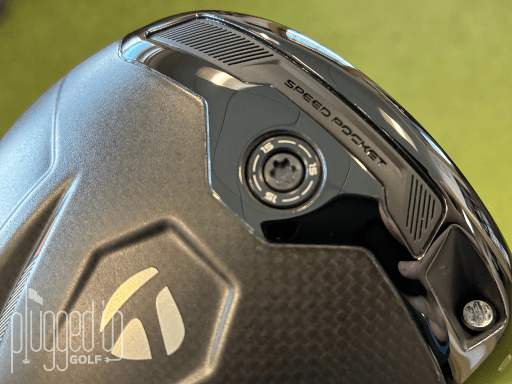 Overall, the sole is mostly wrapped in the same matte black that is seen on the crown with a few subtle accents of a dark blue-green color around the rear. These color accents frame the first of two weight ports – one in the rear and another centered on the front edge. This is a notable change from the TaylorMade Qi35 LS [review HERE] model which had weight ports in the heel, toe and rear of the club.