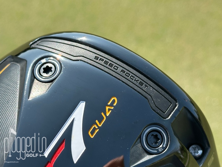 The sole of the TaylorMade R7 Quad Mini Driver is all about the throwback vibes. The original R7 was one of the first “real” drivers I owned, so this definitely hits a nostalgic soft spot. There are four weight ports, but they’re secondary to the “R7 Quad” branding.