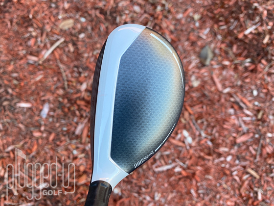 Down by the ball, the SIM Max Rescue is more fairway wood than it is iron. The crown is drawn back creating a low center of gravity that just makes it look like it’s going to be easy to launch.