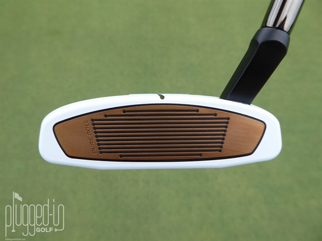 Although the Pure Roll design of the face insert isn’t new for TaylorMade, the use of copper is – and it produced an unexpected solid feel with the Spider FCG. I say unexpected since if felt similar to the milled face putters I’ve been gaming as of late. With urethane balls the sound was a firm ‘click.’