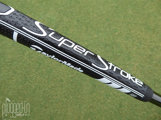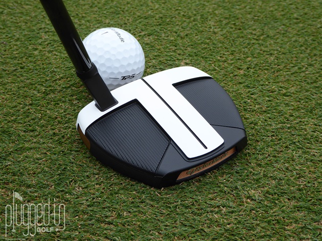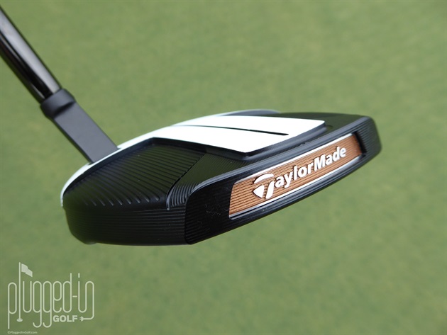 The top of the putter features TaylorMade’s optically engineered T-Sightline True Path. I found the long black line wonderful for aiming the putter and as a reference line to squaring up my feet. Although I don’t foresee a worm-cam zeroed in on my winning putt on an 18th hole in my future, the TaylorMade logo inset on the tail end is something I can appreciate.