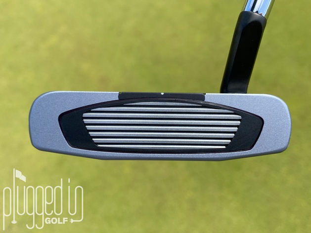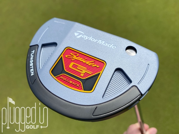 TaylorMade offers the Spider GT Rollback in two different looks. In addition to the one shown here, they offer a Rollback that’s entirely silver with three thin, black sightlines. As someone who doesn’t typically use sightlines, I prefer the thick black stripe because I feel like it frees up my stroke.