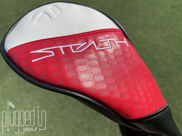 Protected in the bag, the TaylorMade Stealth 2 fairway wood is a standout thanks to its distinctive red, white, and black headcover. The crisp white stitching is well executed and the materials have a premium feel. Slipping the cover off, the good looks continue on the club’s sole. Branding is modestly sized and the angular insets are intriguing.
