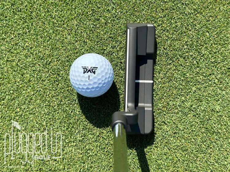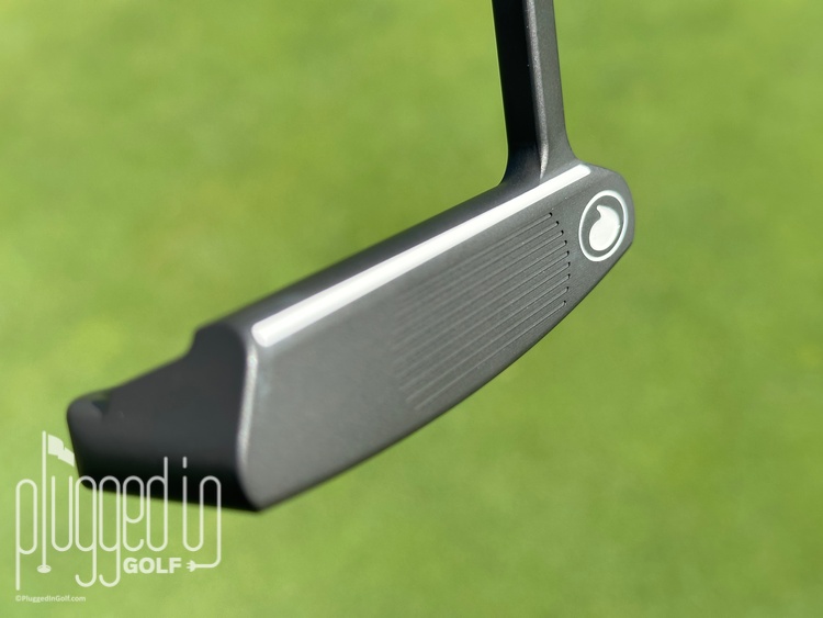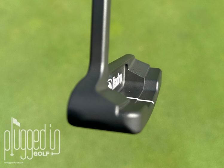 Less subtle is the white line on the ball side of the top line, what TearDrop calls their Leading Edge Alignment System. Contrasted against the black finish, this can help to improve your aim. I liked the Leading Edge Alignment System because it enhanced the line I already use to aim my putter.