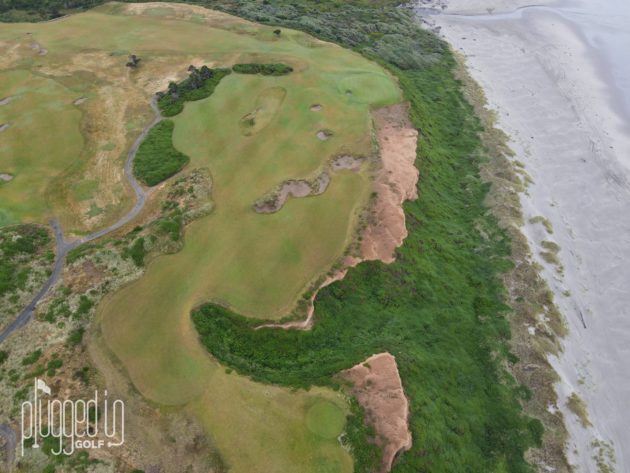 The golf holes aren’t bad, either. The variety of holes and routing in which you encounter them is truly exceptional. There are elements of surprise and delight such as 9 with its blind tee shot and approach to an upper or lower green, depending on the day, followed by the corresponding upper or lower tee on 10. Then there’s the stunning back to back par 3s of 10 & 11, both featuring incredible ocean views. There are no weak holes, the green to tee walks are enjoyable, and each hole feels like an experience unto itself. There are great golf courses and then there is the rare tour de force. This is one of those.