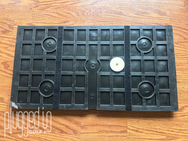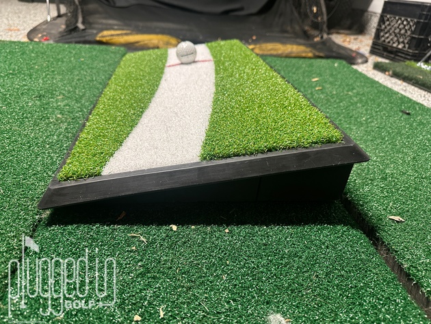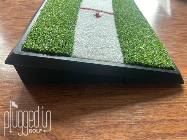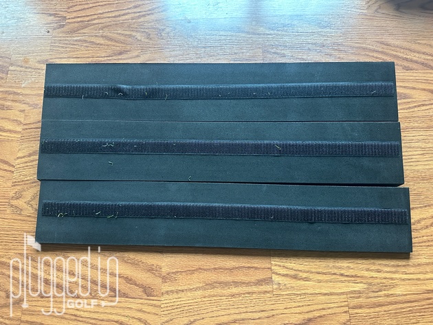 The Draw Board slides out of the box ready to go. The kit includes the hitting mat and three foam wedges (above) that can be attached to the board to simulate a lie with the ball above your feet. Each of the wedges attaches to the bottom of the board with velcro for easy changes.
