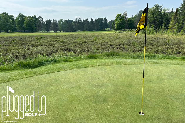 Unlike many of the other courses in the Gaylord area, there isn’t much dramatic elevation change on this course. That doesn’t make the surroundings any less beautiful or the shots any less difficult, though. The course puts a premium on proper positioning, and literally every hole is tree-lined, some more punishingly so than others. The fairways are often narrow, but the rough isn’t overly punishing.