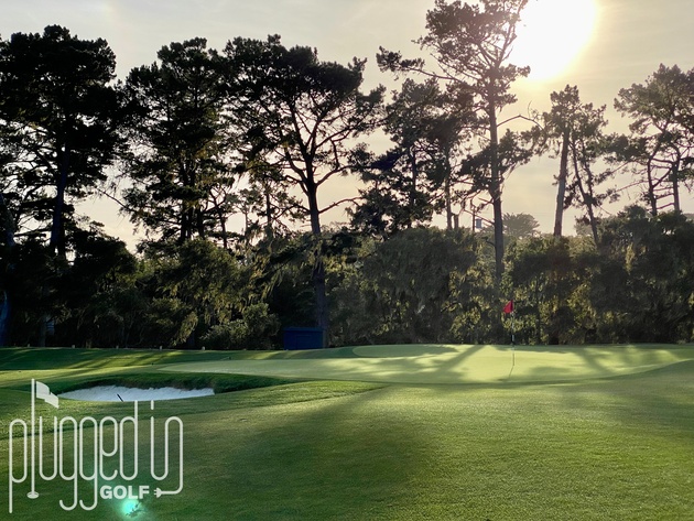 The primary defenses are the contours in the surrounds and the greens themselves. If you’re playing a ground game, judging the speed accurately can be tough when you’re going over a mound through two different cuts of grass. Should you choose the aerial approach, you’ll need that aforementioned precision.