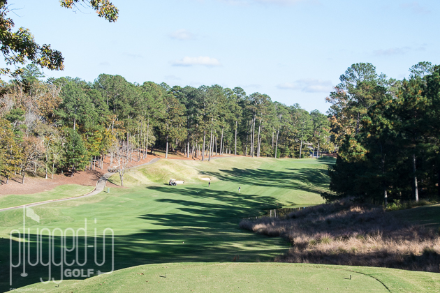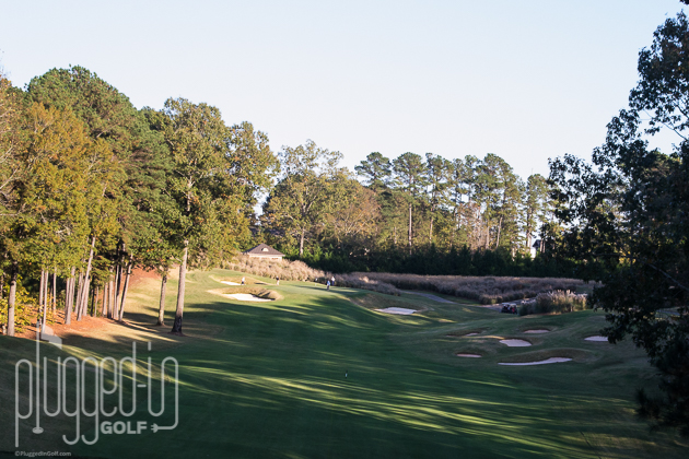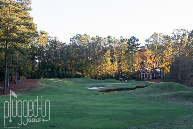 The visual highlight of The Landing is the stretch on the front nine that incorporates Lake Oconee. You first see the water on the approach to #2, then play over it again on the par 3 third hole. #4 plays straight out into the water and is my personal favorite. This loop closes with #5 – a par four that has water on the left from tee to green.