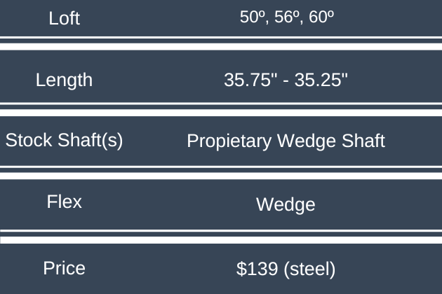 Let’s boil all that down without the buzzwords. The ONE Wedge is counterbalanced, has full-face grooves, a straight leading edge, a cavity back, and a big, wide, rounded sole.