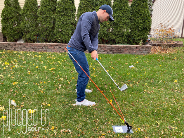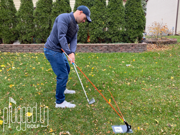 There will be some who are about to post comments saying, “You can do those things without The Swing Plate – just push the stick into the ground.” I certainly won’t argue with you. However, the value The Swing Plate provides is threefold. First, you can set these drills up indoors and on mats. Second, you can set up the angle of the sticks with more precision. Third, if you’re hitting iron shots and taking divots, you can more easily move to fresh turf.