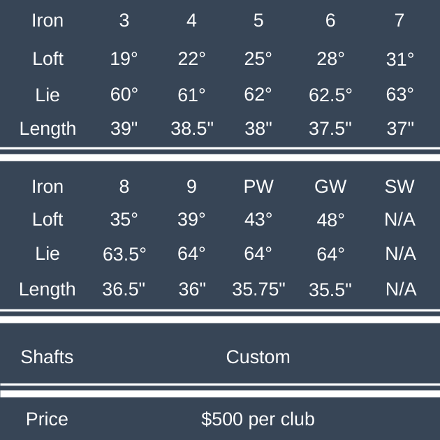 Information…pricing on titleist. cp03 irons
