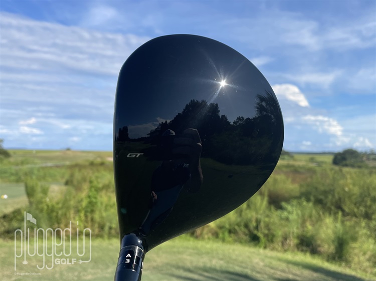 Starting at address, the GT3 has a tall face that contrasts beautifully with a compact front-to-back depth. It’s just slightly pear shaped, leaning toward the toe like old school players drivers did. The gloss black crown has a subtle “GT” alignment aid. Also noteworthy is something you can’t see: seams. My fitter explained that Tour players asked Titleist to keep the seams invisible from address, an impressive feat of engineering.