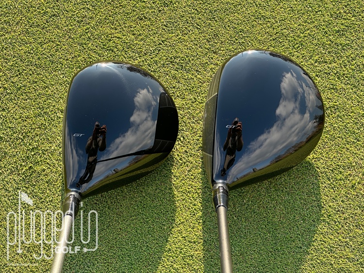 Above you can see the Titleist GT4 driver (left) side-by-side with the GT3. To my eye, the GT4 looks very similar to the GT3, just smaller in every way. Though the GT4 gives the impression of being much smaller, the difference in face width and front-to-back depth is only about 1/8″.