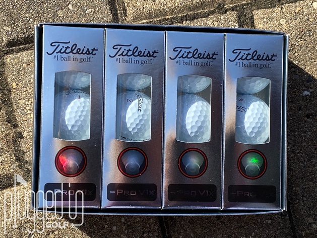 As you can see on the box, Titleist states that the short game spin of the Pro V1x Left Dash is lower than the standard Pro V1x. This is a little jarring in the context of every OEM stating that all of their Tour-level balls feature equally amazing, stupendous, super duper wedge spin.