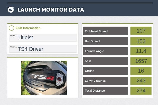 NOTE: Please do not go to the TS3 review to compare launch monitor numbers. That was over 8 months ago with a different shaft and a different loft. Launch monitor numbers from different reviews should never be compared apples to apples.