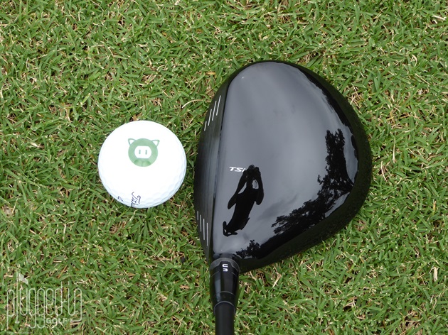Setting up wonderfully square at address, the white paint fill on the face frames the golf ball nicely.  The size of the round, gloss black crown will appeal to both better players and mid-handicap golfers.  Other than the simple “TSi” alignment aid that replaced the triangle on the TS2 fairway [review HERE], there’s no discernible difference between the two generations at address.