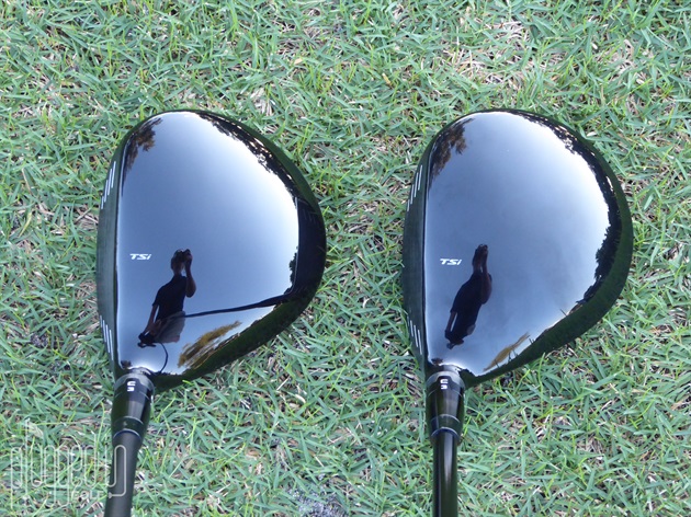 At address, the gap between the TSi2 and TSi3 fairway woods is not as big as it is between the drivers, but it’s still significant.  The TSi3 is more compact from front to back with a shape that’s round, not stretched like the TSi2.  That said, I was still a little surprised at the size of the TSi3 – it’s bigger than I expected.  This may reflect the way that golfers are using FWs off the tee more than they are off the turf.  Finally, both versions have fairly tall faces, but the TSi3 is slightly shorter.
