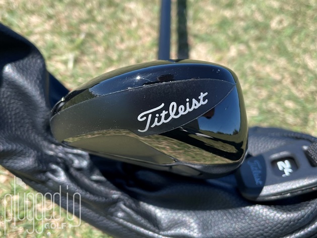 As I’ve come to expect from Titleist headcovers, the TSR2 hybrid cover looks classy in the bag thanks to clean lines and pebbled leather finish. Plus I really like the script Titleist tab on the side. Pulling off the headcover reveals one of the biggest changes from the TSi2 hybrid [full review HERE] – the deep reliefs on the sole.