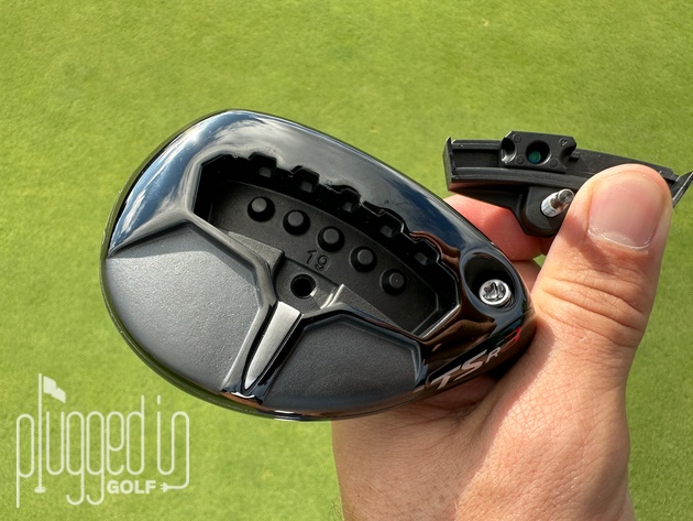 Something that’s new for the TSR3 hybrid is enhanced adjustability. The new SureFit Adjustable CG Track System on the TSR3 has five positions where its predecessor, the TSi3 hybrid, had only three [review HERE]. As you can see above, this is a very tidy system, but it’s not built for on-the-fly adjustments. This fits Titleist’s philosophy of being fit for your clubs, then just playing golf. Set it and forget it. It’s also important to note that this is a fine tuning mechanism. If you need a slice buster, this isn’t it. The extreme positions do offer strong biases than on the TSi3, but this system is for perfecting your ball flight not fixing a chronic issue.