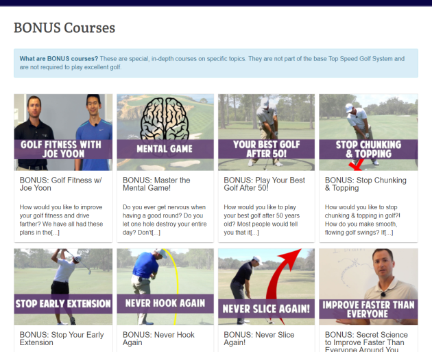 There’s a lot more content on the Top Speed Golf site, but this review is focused on the 20 Minute Distance Fix.
