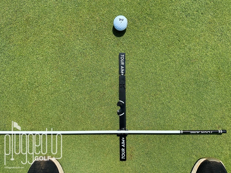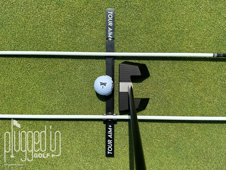 The Tour Aim+ adds three functions to the Tour Aim. First, it promotes consistent ball position and a square club face.