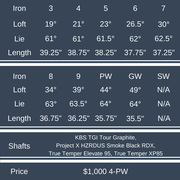 Matt… I’m a 2hdcp low spin player like yourself looking for a bit more distance, height and spin. Seven iron ss for me is usually 83-86mph. Which shaft brand/weight/flex did you use for this review ? Sounds like the results of distance, enhanced spin, shaping shots and holding greens was a winner for you (and maybe even me).