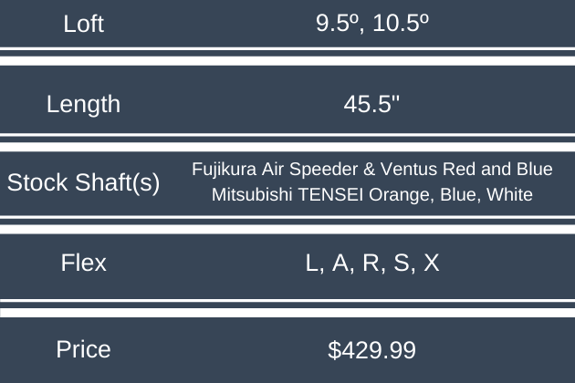 In the C722 and E722 drivers, Tour Edge Exotics gives players numerous shaft choices.  From Mitsubishi Chemicals, they offer the TENSEI Orange, White, and Blue.  The latter two come in both 65 and 75 gram versions.  From Fujikura, light weight players can get what they want from the Air Speeder.  Ventus Red and Ventus Blue are offered, too.  TEE uses their Speed Tested system to offer shaft recommendations for those that can’t be fit in person.