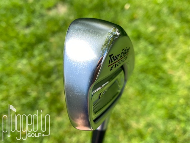 The Tour Edge Exotics E721 irons straddle that line between game improvement and super game improvement irons. This set has a very thick top line and a noticeable amount of offset. The sole is also substantial, though not as wide a some hybrid-style irons.