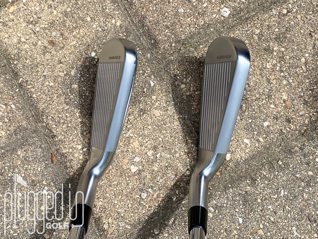 In the bag, the two irons look nearly identical. Both eschew bright colors for silver in a variety of tones and textures. If you look closely, you can spot the E721’s “undercut” design, but the difference is subtle.