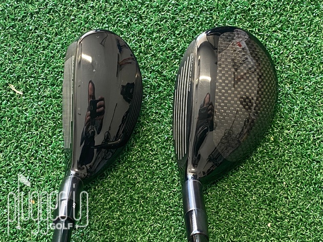 In a side-by-side address picture, we can see that the C723 and E723 are related in name only. The C723 [review HERE] is one of the most compact hybrids available; the E723 one of the largest. You’ll also notice that there’s a large difference in face shape. The E723 has a face that’s rounded at the heel, toe, and bottom edge, more like a fairway wood. In contrast, the C723 has a square face, more like an iron.