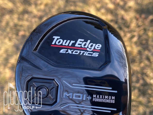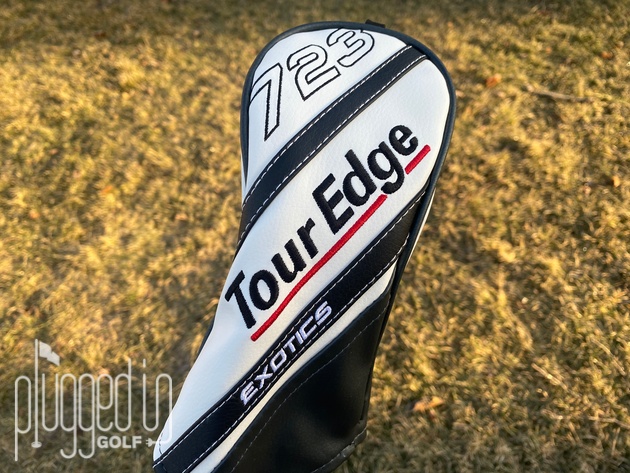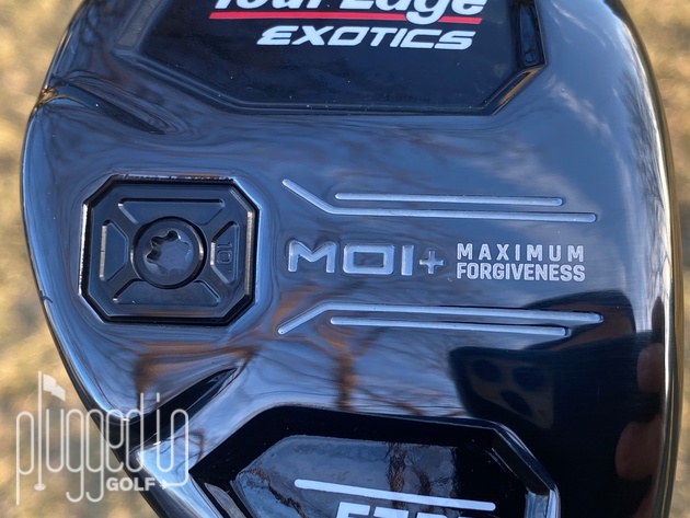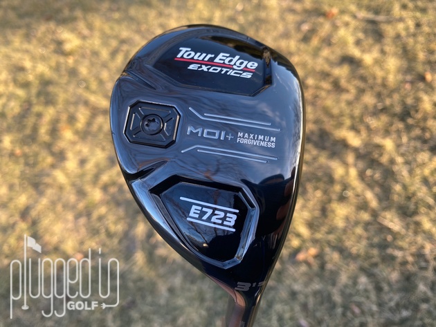 In the bag, your attention goes immediately to the raised middle section which states “MOI+ Maximum Forgiveness.” The “Tour Edge Exotics” and “E723” are pushed to lower segments on the heel and toe. At the back edge, there’s a replaceable Flight Tuning System weight.