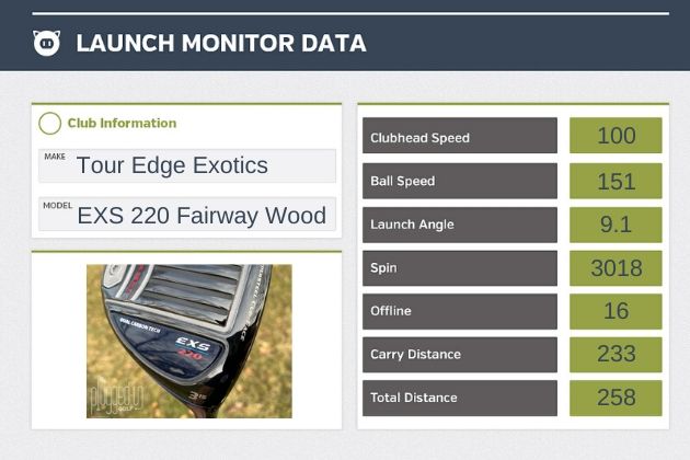 The Tour Edge Exotics EXS 220 fairway wood is exceptionally easy to hit. Very high ball speeds. Not high launching, but very consistent with launch angle.