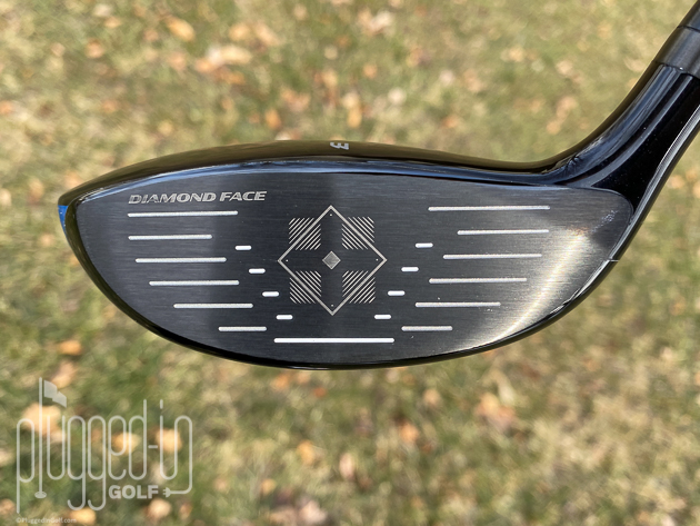 Much like the original EXS fairway wood (review HERE), the EXS 220 fairway wood has an address look that will appeal to a broad range of players. Its size is slightly above average, but it’s extremely well proportioned. It’s symmetrical and round with an average face height – all traits that make it very attractive to me. What fails to come through in the photo above is the amount of sparkle in the crown. It’s not distracting, but there’s enough to make it stand out from the crowd.