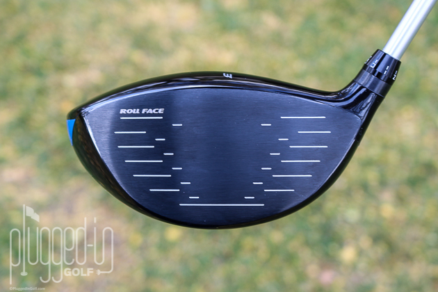 Setting the EXS down behind the ball, you’ll see that the face height is average for a modern driver. There’s ample room to miss a little high or low, but it doesn’t look like a dinner plate set on edge.