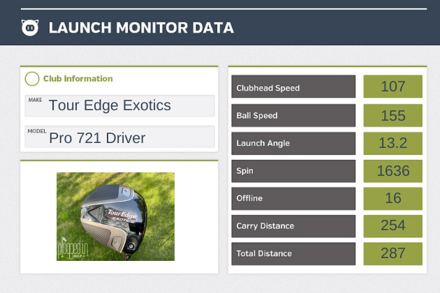 I am curious as to the height you were able to get. 254 carry with 287 total tells me the drives were penetrating with no ballooning. Depending on how I set loft and lie angle on my EXS220, I find 9.5* and 60 lie is best fo me, but there is nothing near 30 yards bounce and roll. My swing speed is around 90. Wondering if the Pro 721 might give me that extra roll. By the way. I am in the fairway most of the time with no slice. Also, my ball flight is straight with an occasional baby draw.
