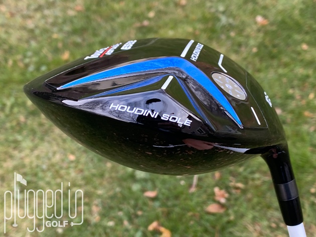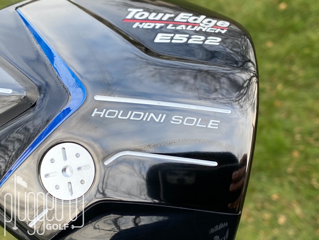 When you flip the E522 driver over, you’ll find a premium-looking sole. The Tour Edge Hot Launch branding is shifted into the toe, putting the focus on the shaping of the Houdini Sole. The other standout feature is the weight plug on the heel side which helps to promote a draw.