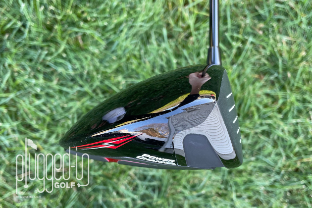 The C523 (above) is more traditional in looks with a taller face. Those that fear the hook will certainly enjoy its open look at address. Unlike the E version, the single removable weight sits at the center back of the C523 while the “power channel” groove runs parallel to the club face. The sole rail design that runs along the bottom of the club has a ton of benefits which I will talk about later on.