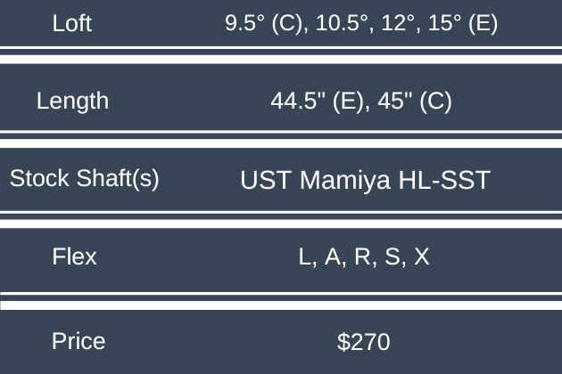 Contrary to the C523, the E523 is geared towards the player looking for maximum forgiveness and higher spin. The E driver, which stands for “extreme spec”, is a slice killer as evidenced by the heel weight and increased offset. The E523 is high launch and its mid spin design helps keep the ball in the air longer. Players with swing speeds under 100 mph should certainly give the E523 a try.