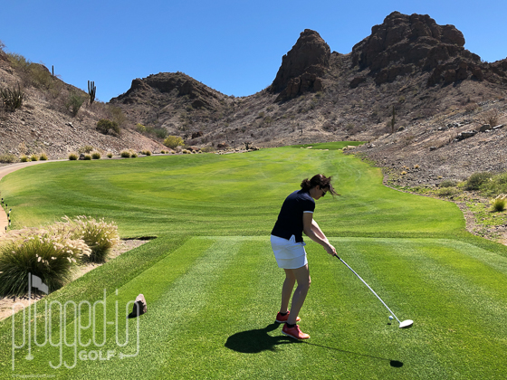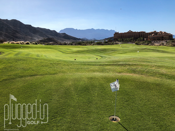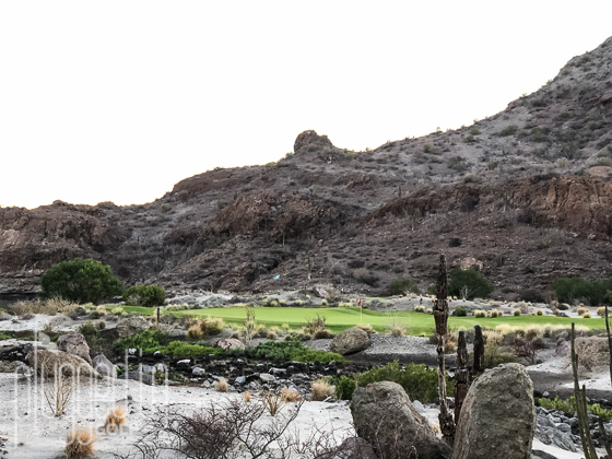 Off the tee, there are some elements that work in the golfer’s favor. Many of the fairways are banked to keep balls out of the desert. The tee boxes are as perfectly conditioned as any I’ve seen, and there’s no rough to speak of. All that said, if you drive it into the desert, you’re sunk. Off the fairway, you’ll find pebbles, rock, and boulders, plus a variety of desert plants and creatures. Those bigger rocks can lead to some friendly bounces – I had a shot hit the right rocks and end up on the very left edge of the grass – but those bounces can just as easily throw your ball back toward the tee.