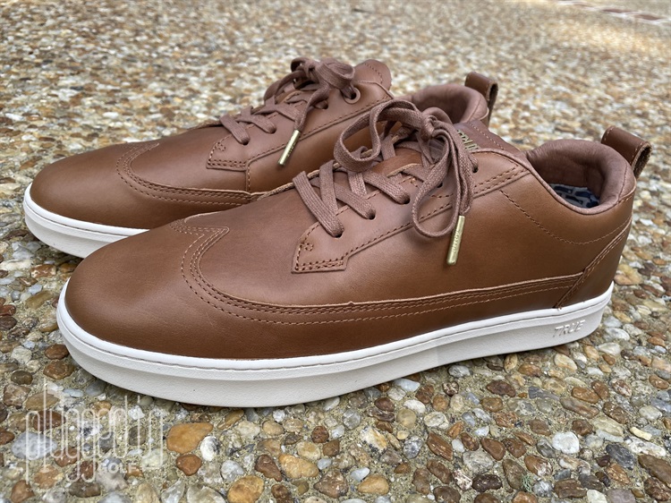 The TRUE Linkswear FS-TOUR have an upscale sneaker look that makes them equally at home on the golf course or a cocktail party. Although purist might scoff at calling the FS-TOUR wingtips, for me having the leather cap running the length of the shoe offers distinctiveness without pushing the fashion boundaries.