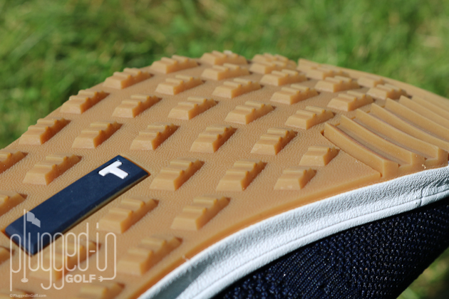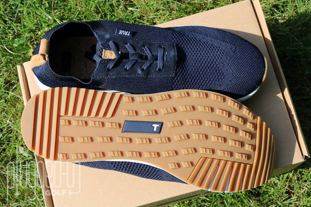 The TRUE Linkswear Knit shares a tread pattern with the Outsider. It’s a sole that’s designed for versatility on and off the course. As with other TRUE’s, I found that because of the flexibility of the sole and connection with the turf, I never slipped. If I were playing in truly sloppy conditions I might opt for “real” spikes, but the Knit provides plenty of traction in any normal conditions.