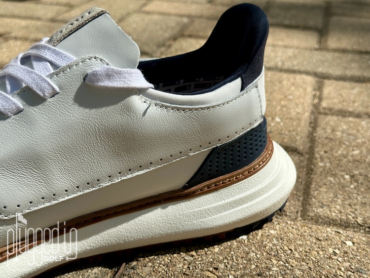 The TRUE Linkswear Lux² Maven is the most expensive TRUE yet, and the materials reflect that.  Its upper is full grain Napa leather, and the front half of the shoe leaves this undisturbed.  The back half of this shoe has a lot of interesting details with a contrast color, elastic strap around the heel, and detailed branding.  This shoe hits that sweet spot of looking clean without being boring.