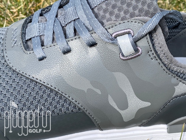 The TRUE Linkswear Lux Hybrid golf shoes are hard to categorize, blending elements of a traditional golf shoe with modern features. Borrowing from the Lux Knit, the Lux Hybrid has a modern, waterproof knit upper. The leather saddle throws a traditional element into the mix. A camo pattern on the leather will keep anyone from thinking you borrowed your grandpa’s shoes. True to form, TRUE keeps the branding very minimal – just a small logo on the tongue and heel.