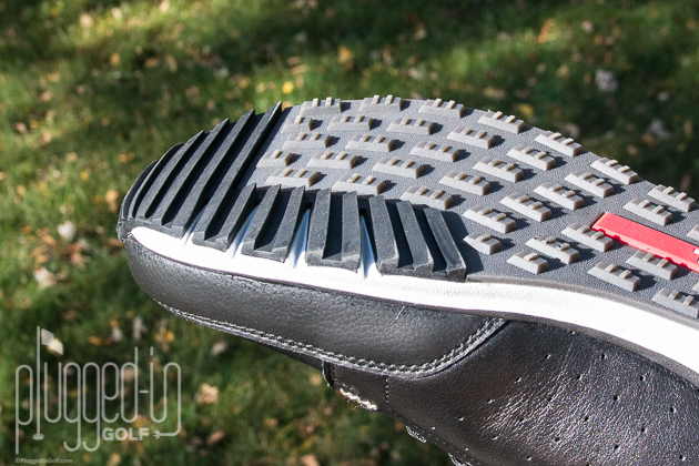 TRUE refers to the sole of the Outsider as having a “Cross Life Tread.”  Essentially it’s a compromise between spikes, which provide terrible traction in the real world, and a normal rubber sole, which provides no grip on the course.  I’ve found it to be a very happy medium.  They’re not what I would pick for sloppy, mushy golf, but they provide plenty of traction for golf in decent conditions.