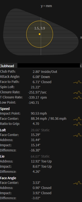 Additionally, you’d like the impact lie angle as close to 0* as possible, the face to path relationship as close to 0* as possible, and the swing direction as close to 0* as possible (or whatever intended ball flight you’re trying to accomplish).