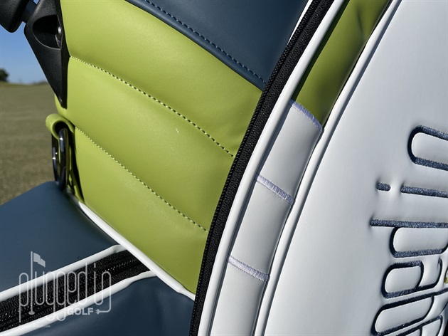 I mentioned feel above because the Luxury Microsuede is a noteworthy feature.  Having the look and feel of a fine leather, this UFO leatherette is rigid enough to give the bag structure and makes cleaning a snap.  UFO Tour Golf also offers glossy and exotic looking materials.