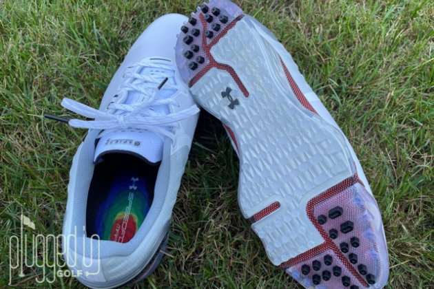 The 2021 Under Armour Spieth 5 spikeless golf shoe is slightly different from a traditional spikeless shoe. UA built this shoe on the same chassis as previous versions but without the replaceable spikes on the bottom.