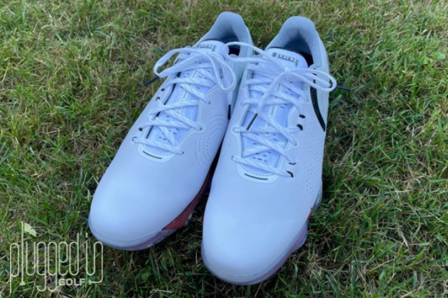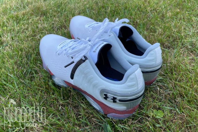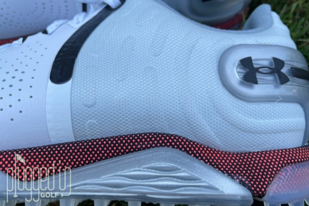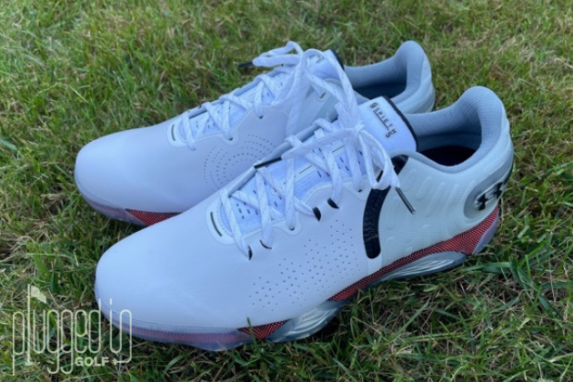 I have been a fan of the typical Spieth designs in previous iterations and this stays right on par with that trend. Red and black accent a primarily white shoe with the unique perforated design that cover parts of the sides.