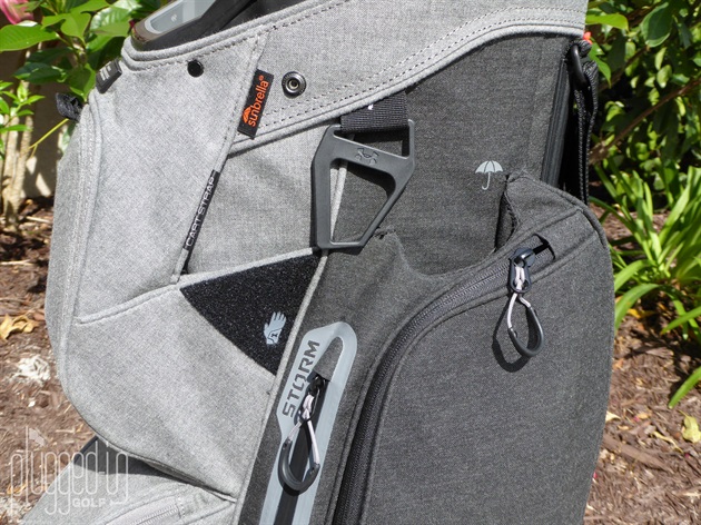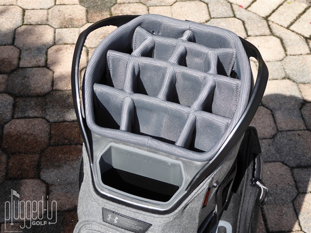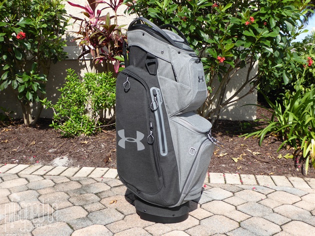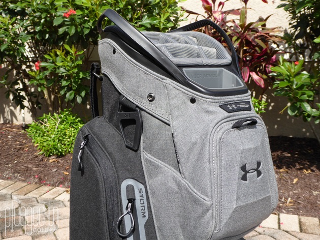 The Smart Strap System of the UA Storm Armada Sunbrella Cart Bag really shines in the performance category. Ideal if you own your own cart, the two heavy duty Velcro straps lock the bag in place and keep it from twisting or taking an embarrassing launch off the back. The length of the straps gave me plenty of options for cart variations. For normal cart strap use, the labeled pass through slot kept access to pockets unencumbered.